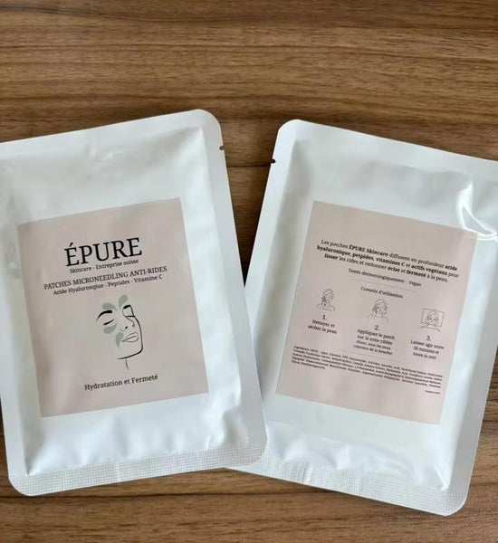 Les patchs ÉPURE Skincare diffusent acide hyaluronique pur et peptides de qualité premium grâce à des micro-aiguilles ultra-fines qui se dissolvent délicatement sous la peau.